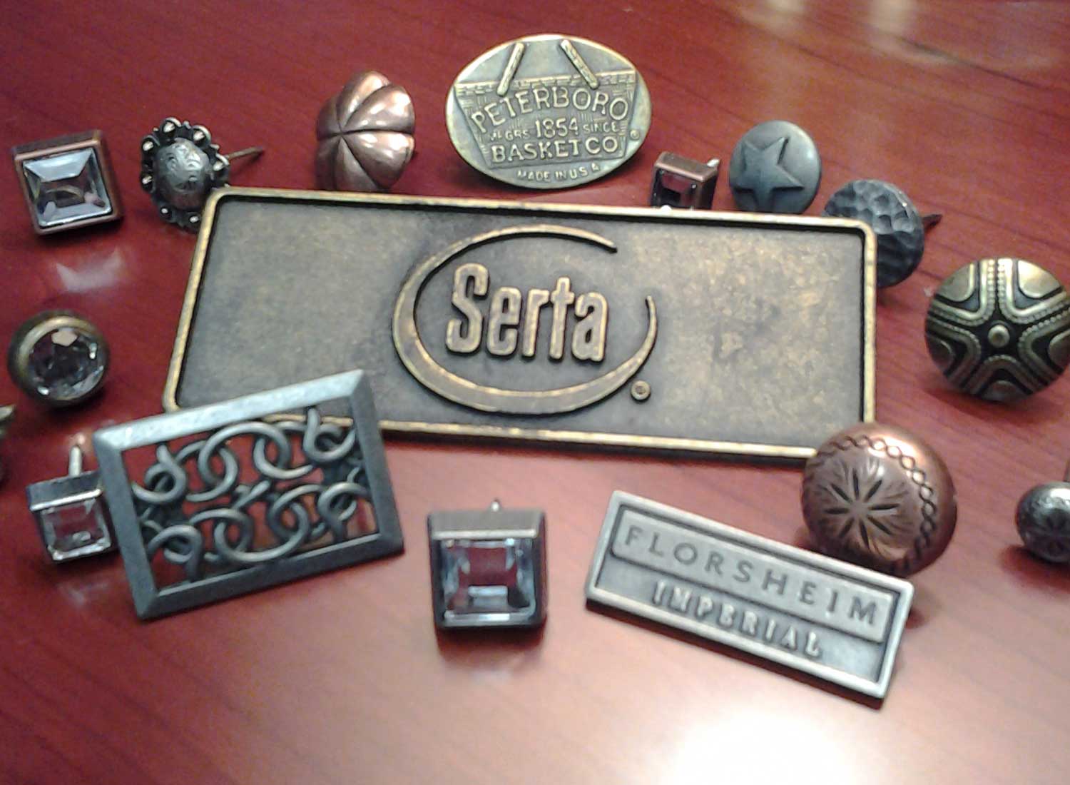 Choose from: name plates, logo appliques, along with decorative nails and buttons.
